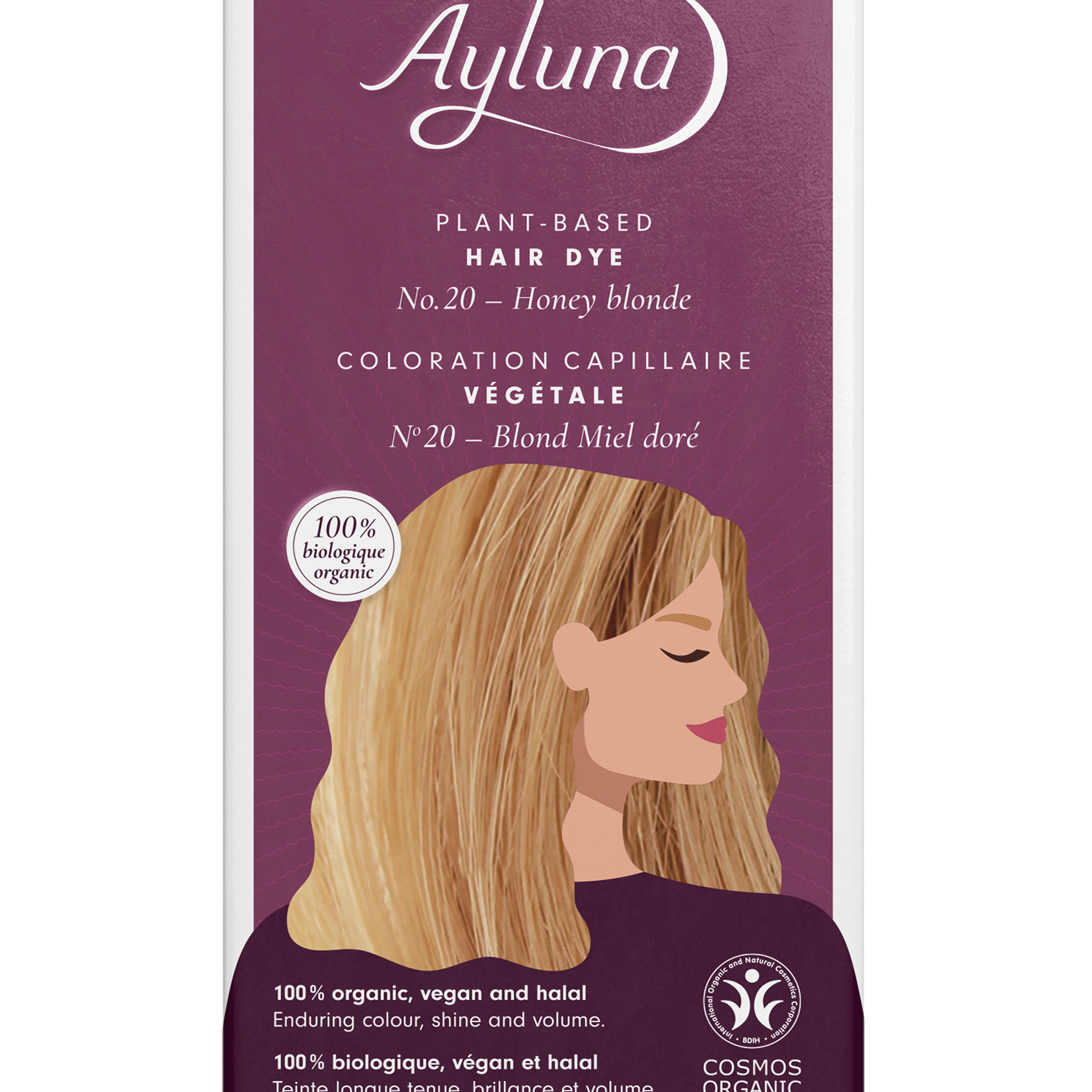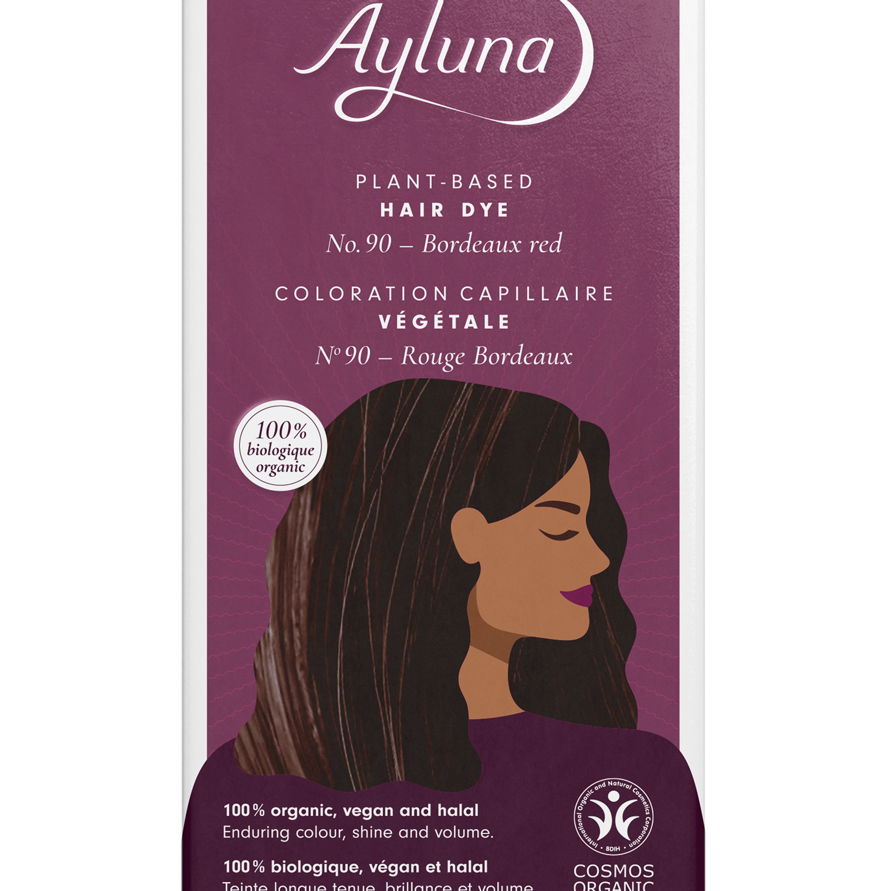 Ayluna plant-based hair dye surrounds every single hair by a shining glaze of selected organic plant extracts. By the interaction with the natural hair colour, expressive, lively shades, shine and volume are created, gently and enduringly.